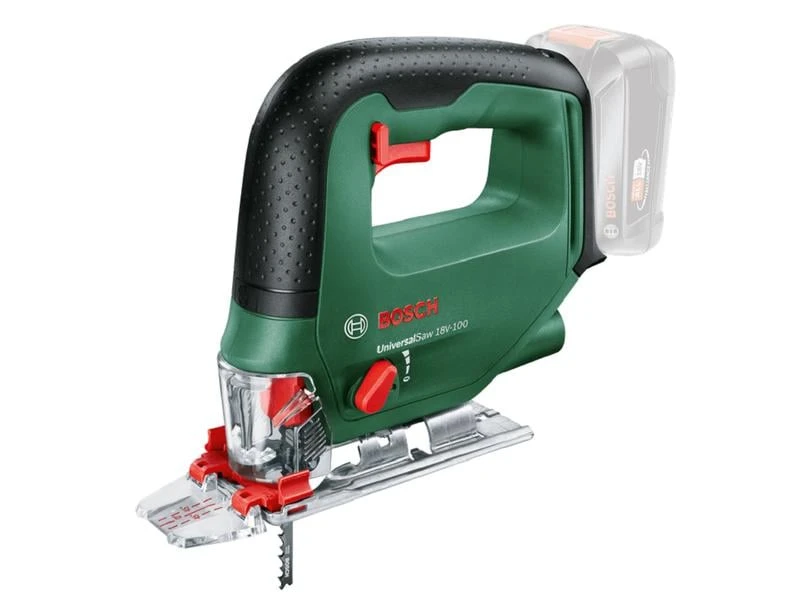 Die Akku-Stichsäge UniversalSaw 18 V-100 ist der universelle Partner für vielfältige Sägearbeiten im Haushalt, zum Beispiel beim Zuschneiden von Parkett oder Regalen. Mit einer Schnitttiefe von bis zu 100 mm in Holz sowie bis zu 8 mm in Stahl und einer Vielzahl an hilfreichem Zubehör bietet die Stichsäge ein breites Anwendungsgebiet. Der vierstufige Pendelhub treibt das Sägeblatt selbst durch das härteste Material bei gleichbleibend hoher Geschwindigkeit. Die Kombination aus komfortablem Sanftanlauf und leicht einstellbarer Drehzahlregulierung sorgt für einen hohen Bedienkomfort für Einsteiger und Fortgeschrittene. Das SDS System gewährleistet einen schnellen und einfachen Sägeblattwechsel.