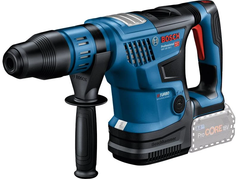 Der GBH 18V-36 C Professional kombiniert extrem kompakte Bauweise mit grosser Leistungsstärke für anspruchsvolle Arbeiten in Beton. Mit einem geringen Gewicht von nur 6.1 kg ist er wesentlich kompakter und leichter gebaut als jeder andere Akku-Hammer mit SDS max auf dem Markt.