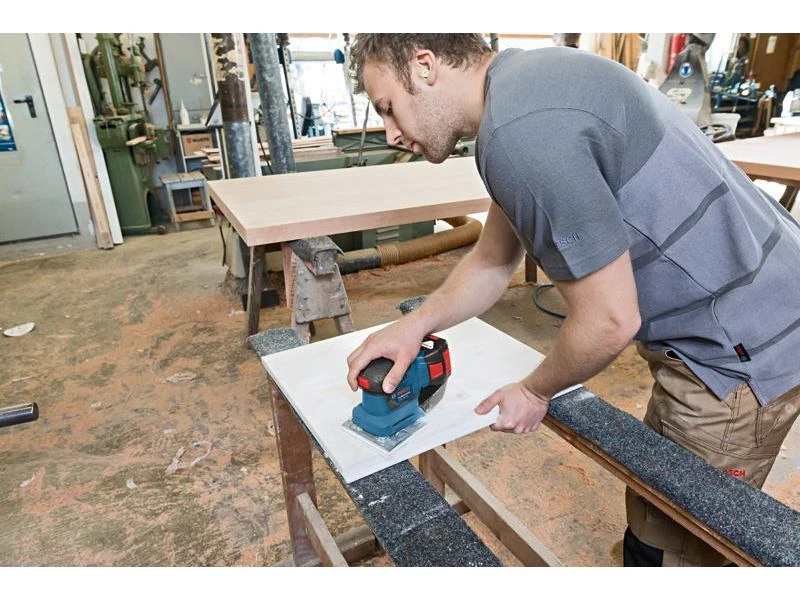 Mit dem 18-Volt-Akku-Schwingschleifer GSS 18V-10 von Bosch Professional erledigen Sie mühelos eine Vielzahl an Schleifarbeiten. Dank seiner kompakten Bauform erreichen Sie jede Ecke. Die Schleifplatte kann sowohl Klett- als auch Klemmpapier aufnehmen und hält es sicher, sodass es weder flattert noch reisst. Dank des Microfilter-System wird der entstehende Schleifstaub effizient abgesaugt. Abgedichtete Kugellager und die robuste Bauweise garantieren eine lange Lebensdauer.