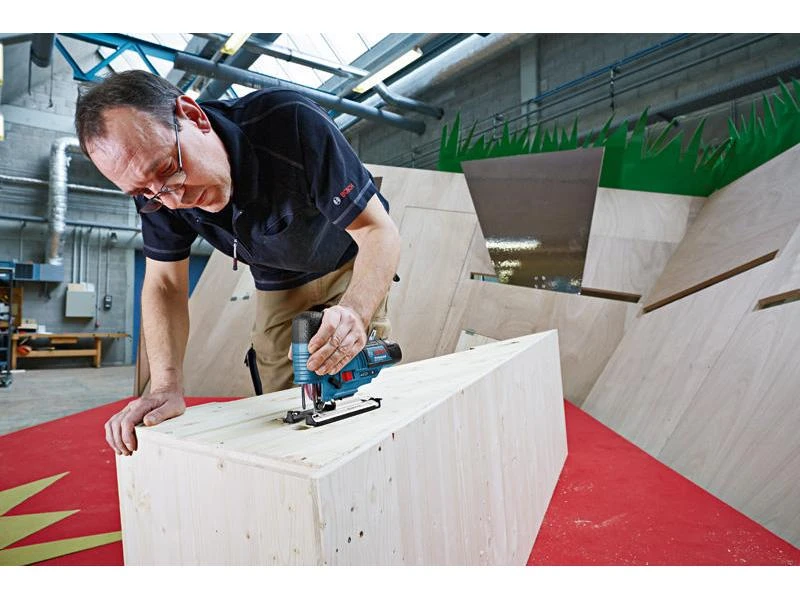 Eine Stichsäge ist eine handgeführte Maschine mit schmalem Sägeblatt. Sie eignet sich ideal zum Schneiden von Ausschnitten, geschwungenen Formen und Erweitern kleiner Öffnungen. Das eingespannte Sägeblatt schneidet Werkstoffe mittels Hubbewegungen.
