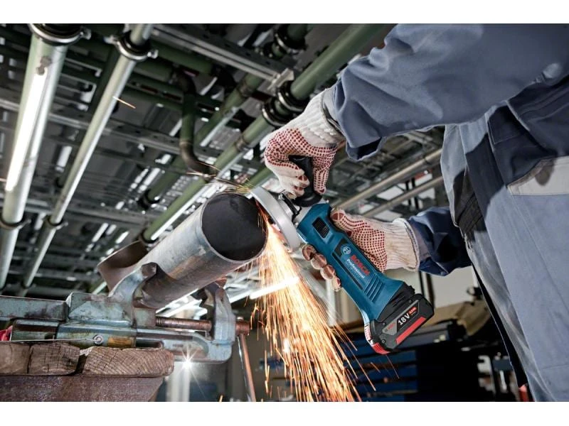 Der GWS 18-125V-LI von Bosch Professional ist ein leistungsstarker 18-Volt-Akku-Winkelschleifer mit einer hervorragenden Abtrags- und Schnittleistung. Der extrem robuste und belastbare 4-Pol-Hochleistungsmotor glänzt durch eine lange Lebensdauer und liefert eine Leerlaufdrehzahl von 10‘000 rpm. Die kompakte Bauform und das geringe Gewicht von nur 2,3 kg ermöglichen auch an engen Stellen und Überkopf ein komfortables Arbeiten. Zudem ist der Getriebekopf in 90°-Schritten drehbar und der Handgriff links und rechts einsetzbar. Die Ladezustandsanzeige informiert Sie jederzeit über die noch zur Verfügung stehenden Energiereserven.