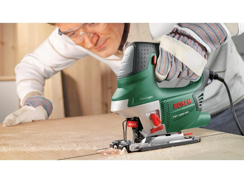 Die Bosch Stichsäge PST 1000 PEL liefert genaue Ergebnisse bei verschiedensten anspruchsvollen Anwendungen. Mit dem Hubzahlvorwahl wird die am besten geeignete Hubzahl für das jeweilige Material ausgewählt. Die Aluminiumfussplatte kann für kontrollierte gewinkelte Schnitte werkzeuglos eingestellt werden. Mit Hilfe eines Parallelanschlags werden gerade Schnitte leicht ausgeführt. Diese Stichsäge ist die vielseitige Wahl zum Sägen in Holz und Stahl bis zu 100 mm. Das SDS-System ermöglicht einen schnellen und einfachen Sägeblattwechsel mit einer Hand.