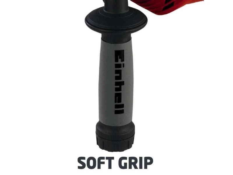 Mit dem Bohrtiefenanschlag aus Metall legen Sie die gewünschte Tiefe der Löcher im Voraus exakt fest. Ein Zusatzhandgriff bietet Ihnen während der Benutzung der Schlagbohrmaschine zusätzlichen Halt. Befestigt wird er durch Klemmung. Der Zusatzhandgriff ist mit einer Aufbewahrung für Bohrer ausgestattet, in der Sie Bohrer verschiedener Grösse aufbewahren können. Am unteren Ende des Softgriffs befindet sich zudem ein Kabelclip zur Fixierung von aufgewickeltem Kabel.